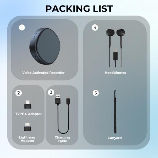 - * [stéréo de haute qualité et accessoires riches] notre mini enregistreur vocal compact dispose d'un microphone stéréo numérique amélioré qui réduit considérablement le bruit de fond sans perte audio, vous permettant de prendre des notes sur papier avec précision et efficacité. Livré avec tous les accessoires dont vous pourriez avoir besoin: adaptateur type - C, adaptateur Lightning, casque filaire, câble de charge et cordon. Cadeau parfait pour tout le monde.