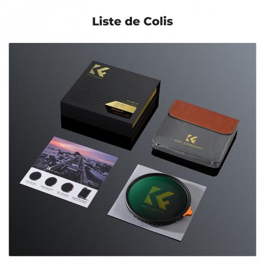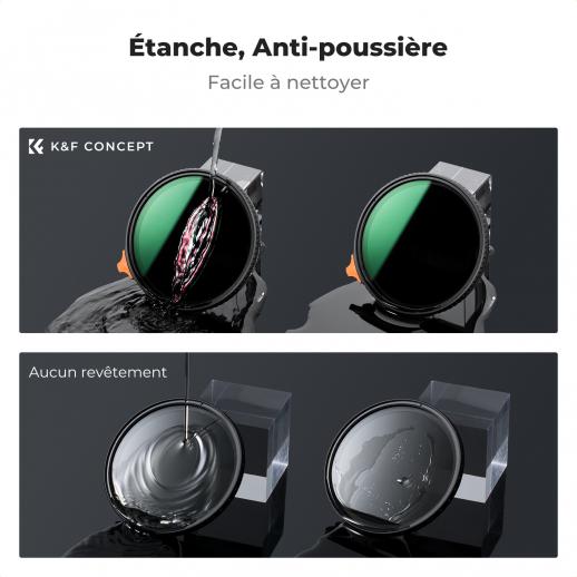 - * 【Imperméable et Résistant aux Rayures】Équipé de revêtements multicouches hydrophobes, résistants à l'huile et aux rayures des deux côtés, le filtre K&F Concept ND est entièrement protégé et parfait pour une utilisation aventureuse.