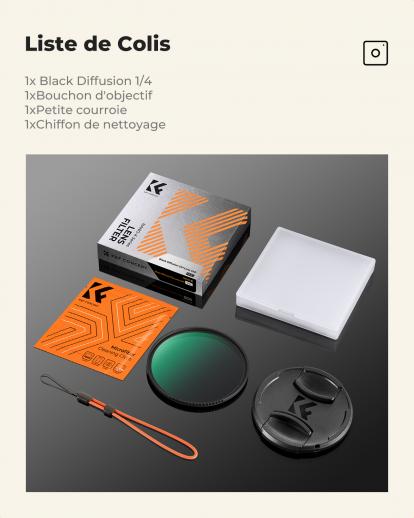 - * 【Importation de verre optique AGC】Filtre de diffusion noir K&F Concept fabriqué en verre optique AGC japonais importé, multicouches double face à 84% de transmission, garantissant la qualité de l'image et aucune dominante de couleur.