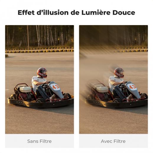 - * Effet de flou de mouvement exceptionnel : le filtre anti-flou portable permet de créer des effets spéciaux originaux en affichant une partie nette et une partie floue dynamique. Ce filtre offre une expérience photo créative unique. Il transforme des images ordinaires en œuvres d'art psychédéliques, abstraites et oniriques.