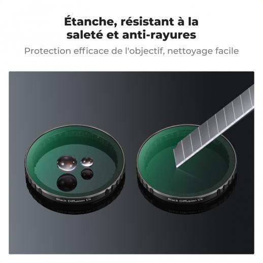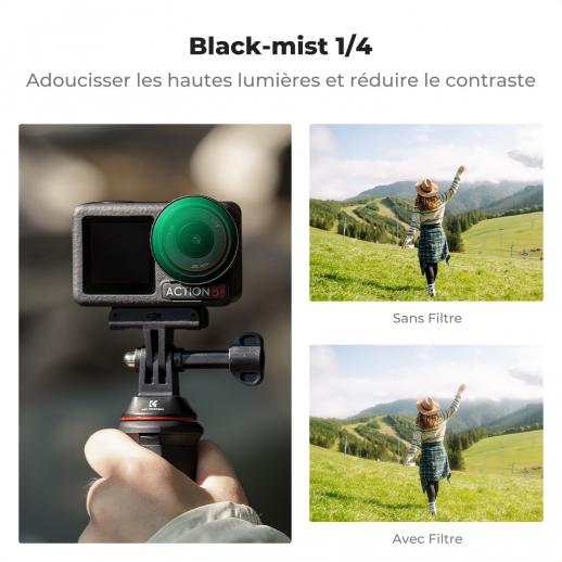 Filtre diffusion noir K&F Concept Push-in 1/4 pour DJI Osmo Action 5 Pro, filtres à effet cinématique Creative Mist pour DJI Osmo Action 4 Action 3, cadre multicouche/verre optique/alliage d'aluminium