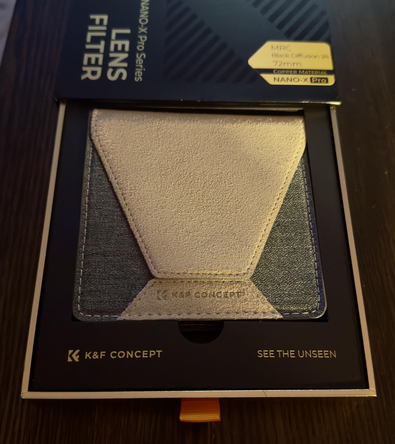 Je suis encore en train d'apprendre quelles sont les meilleures situations d'utilisation du filtre de diffusion noir, mais jusqu'à présent, je suis plutôt satisfait du filtre de diffusion noir K&F Concept 72 mm.