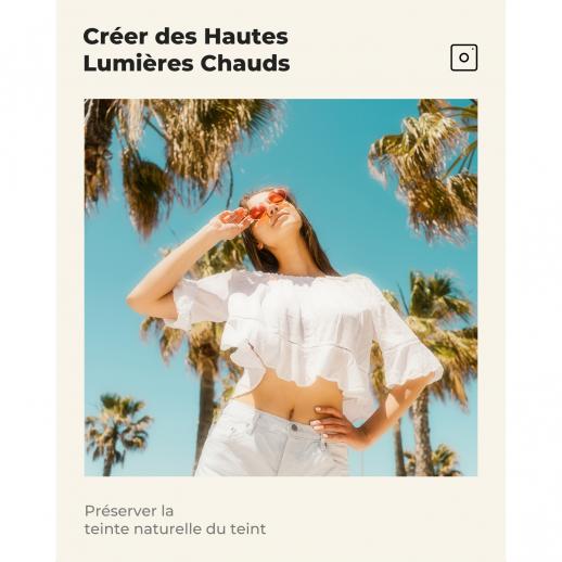 - * 【Teint de Peau Solaire】Sublime les visages avec une lumière ambrée flatteuse. Atténue les imperfections tout en réchauffant les carnations pour un rendu luxueux.