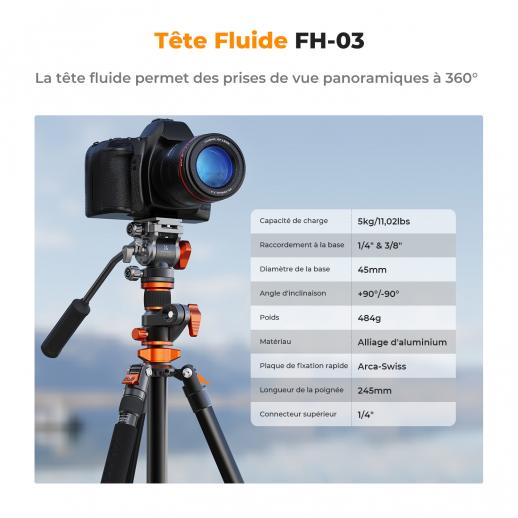 - * 【Rotule Hydraulique Professionnelle】Technologie à amortissement hydraulique pour des mouvements ultra-fluides, idéale pour vidéo et panoramas.
