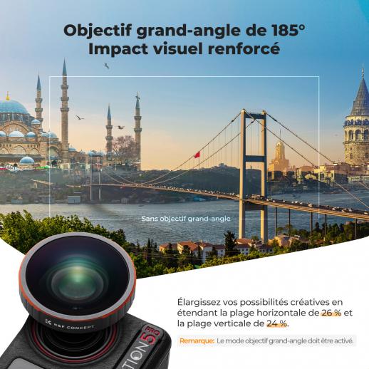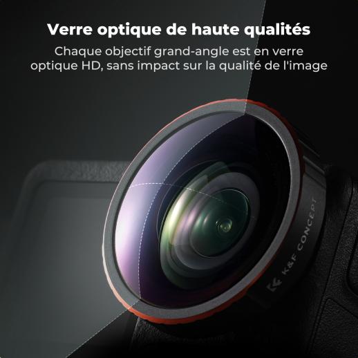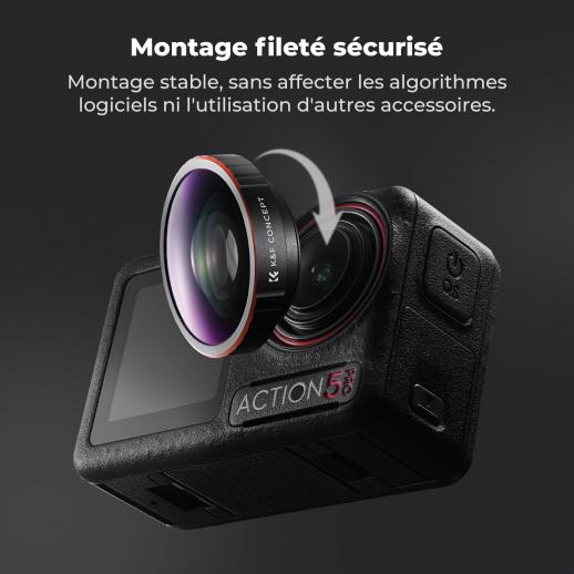 Objectif grand angle K&F CONCEPT compatible avec DJI Osmo Action 5 Pro, à visser, offrant un champ de vision plus large de 185°, en verre optique multicouche. Accessoires pour caméra d'action Osmo Action 4.