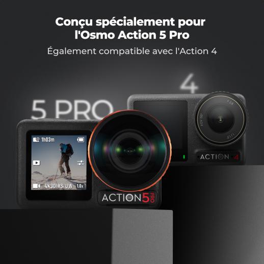 - * [Compatibilité parfaite avec les DJI Osmo Action 5 Pro et Action 4] : Conçu spécifiquement pour les caméras DJI Osmo Action 5 Pro et Action 4. Son système de fixation par filetage sécurisé, identique à celui de l’objectif d’origine, assure une installation stable sans gêner le fonctionnement de la caméra ni l’utilisation de ses accessoires.